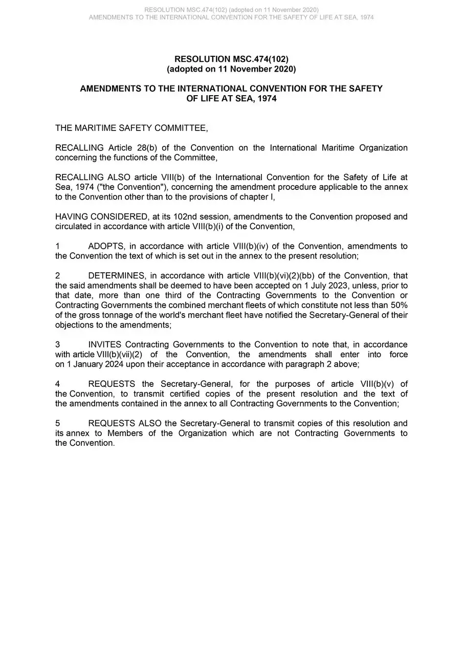 Согласно требованиям вышеперечисленных резолюций при выполнении любого освидетельствования судна для целей выдачи или подтверждения Свидетельства о безопасности грузового судна по конструкции / Свидетельства о безопасности пассажирского судна, 1 января 2024 или после этой даты инспектором РС должно быть проверено наличие на борту следующей документации, разработанной и поддерживаемой в актуальном состоянии Компанией: